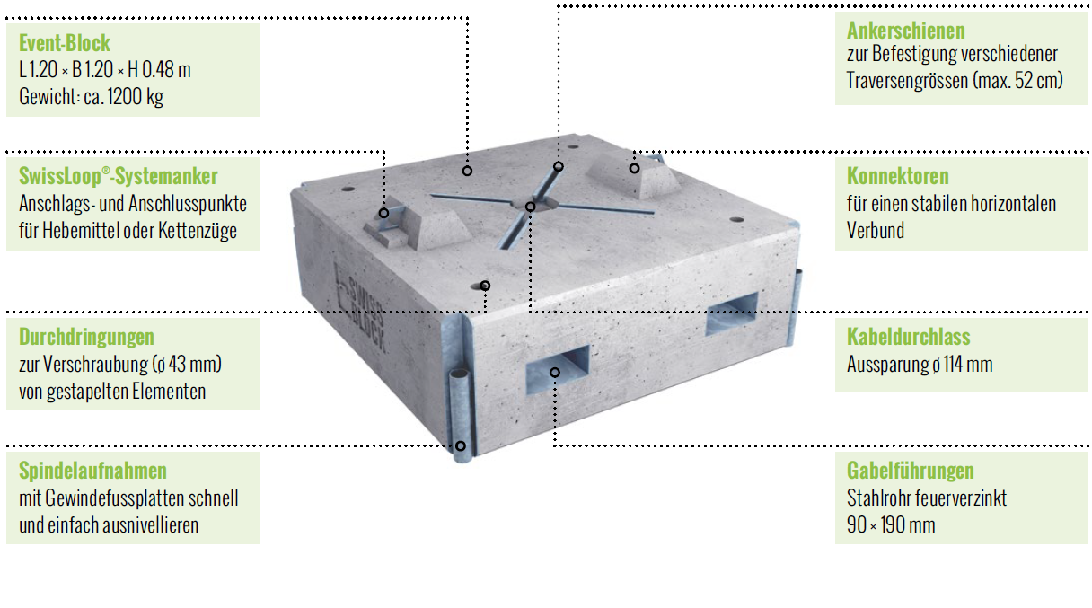 Auch wenn es mal laut wird, wir bleiben konstruktiv! Der Event-Block wurde spezifisch auf die Bedürfnisse der Eventbranche und der Veranstaltungstechnik entwickelt. Ob PA-Tower oder Beleuchtungstruss, an unseren raffinierten Event-Block kann jedes Traversensystem kraftschlüssig angeschlossen werden. Besonders im temporären Einsatz auf Veranstaltungen ist die Standsicherheit essentiell.